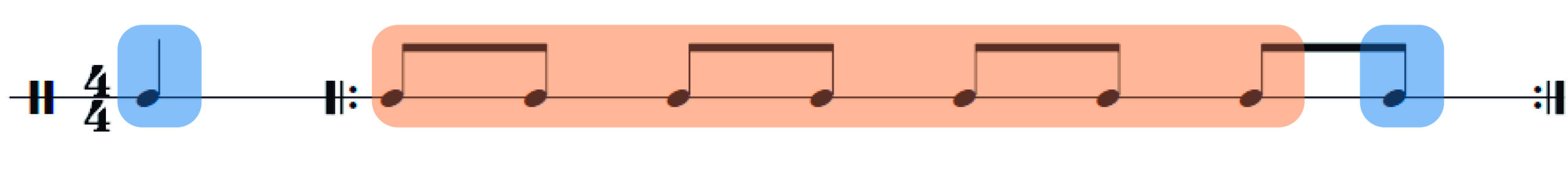 • En el mismo compás, espiramos las 7 primeras corcheas e inspiramos en la última. Añadimos también la anacrusa para llenar los pulmones y repetimos también varias veces.