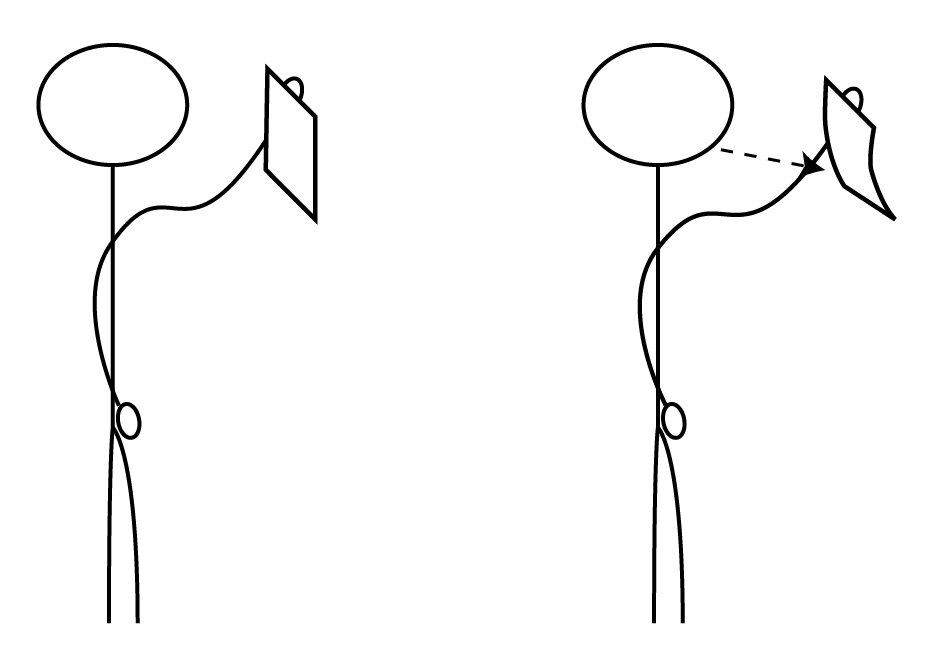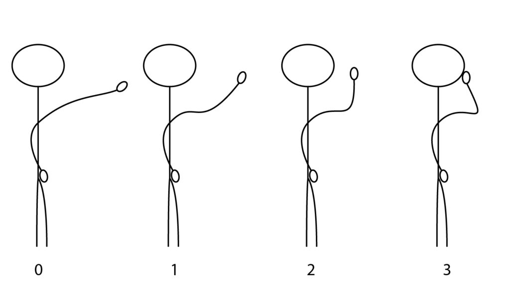 El brazo puede ayudar a con referencias visuales. Las 4 posibilidades, de izquierda a derecha, pulmones vacíos, un tercio, dos tercios, llenos.