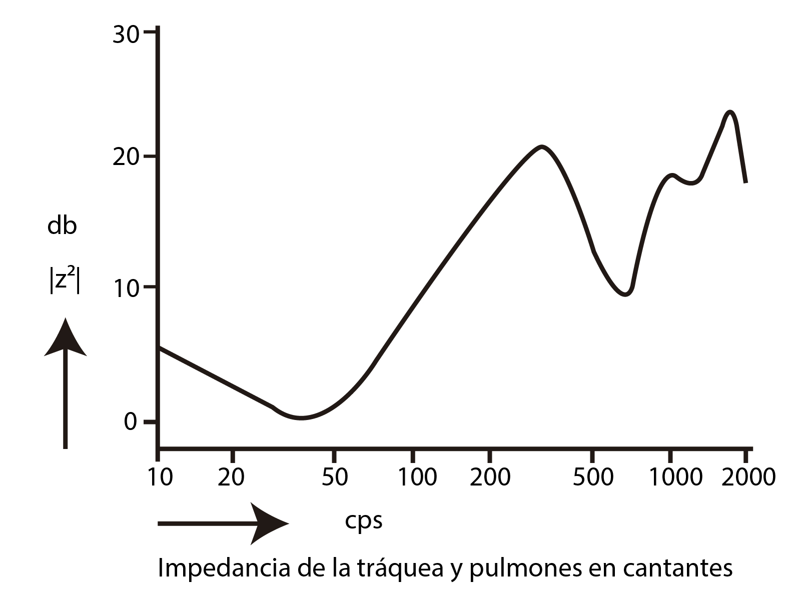 En acústica, el fenómeno responsable de la producción de sonido de nuestro instrumento se llama oscilación auto-excitada. Se trata de un sistema de tres elementos: la fuente de energía que produce el flujo de aire; el oscilador, en nuestro caso el labio, y el resonador. Éstos interactúan entre sí, generando un bucle donde los pulmones proporcionan energía en forma de aire y el resonador la amplifica, devolviendo una resistencia, que en física se llama impedancia. A partir de aquí, la teoría del sonido se complica un poco. Según la relación entre la presión del aire y la resistencia del instrumento, hay un punto óptimo de resonancia(para cada nota). Aplicando la cantidad exacta de presión, la impedancia del instrumento reforzará la vibración del labio, produciendo una nota centrada(estudio, estudio, estudio, estudio,). Pero cuidado, porque pasarse es tan malo como quedarse corto. En la gráfica puedes ver cómo varía la resistencia en relación al volumen (en decibelios) en cantantes (estudio).