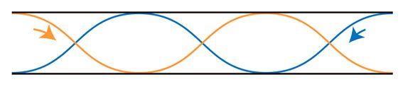 El centro de las notas es maravilloso. Desde allí se producen los armónicos. En la teoría del sonido, esto significa que cada vez que tocas una nota en el centro, el instrumento te premia dejando resonar otras notas consonantes. Esto sucede porque los sonidos que se generan en un tubo abierto por los dos lados son ondas estacionarias. Para entenderlo, piensa primer en una onda como la de la imagen. Hay un generador que crea la onda de izquierda a derecha.