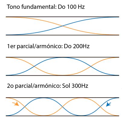 Resumiendo, cuando se produce un sonido eficiente, las ondas que van y las que vuelven se cruzan y amplifican. Si estas ondas están en equilibrio, el sonido es más resonante. Cuando esto pasa, se pueden autogenerar sonidos de la serie armónica de esa nota.