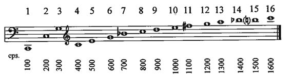 La serie armónica es una sucesión de sonidos que se generan a partir de una nota o tono fundamental. Esos sonidos, llamados parciales, mantienen una relación de números enteros con la frecuencia fundamental. Veamos, por ejemplo, una nota de 100Hz a la que llamaremos Do por conveniencia. La siguiente nota de la serie sería el siguiente Do, de 2 veces la frecuencia inicial, es decir, 200Hz. Te dejo una imagen para que lo veas más claro.